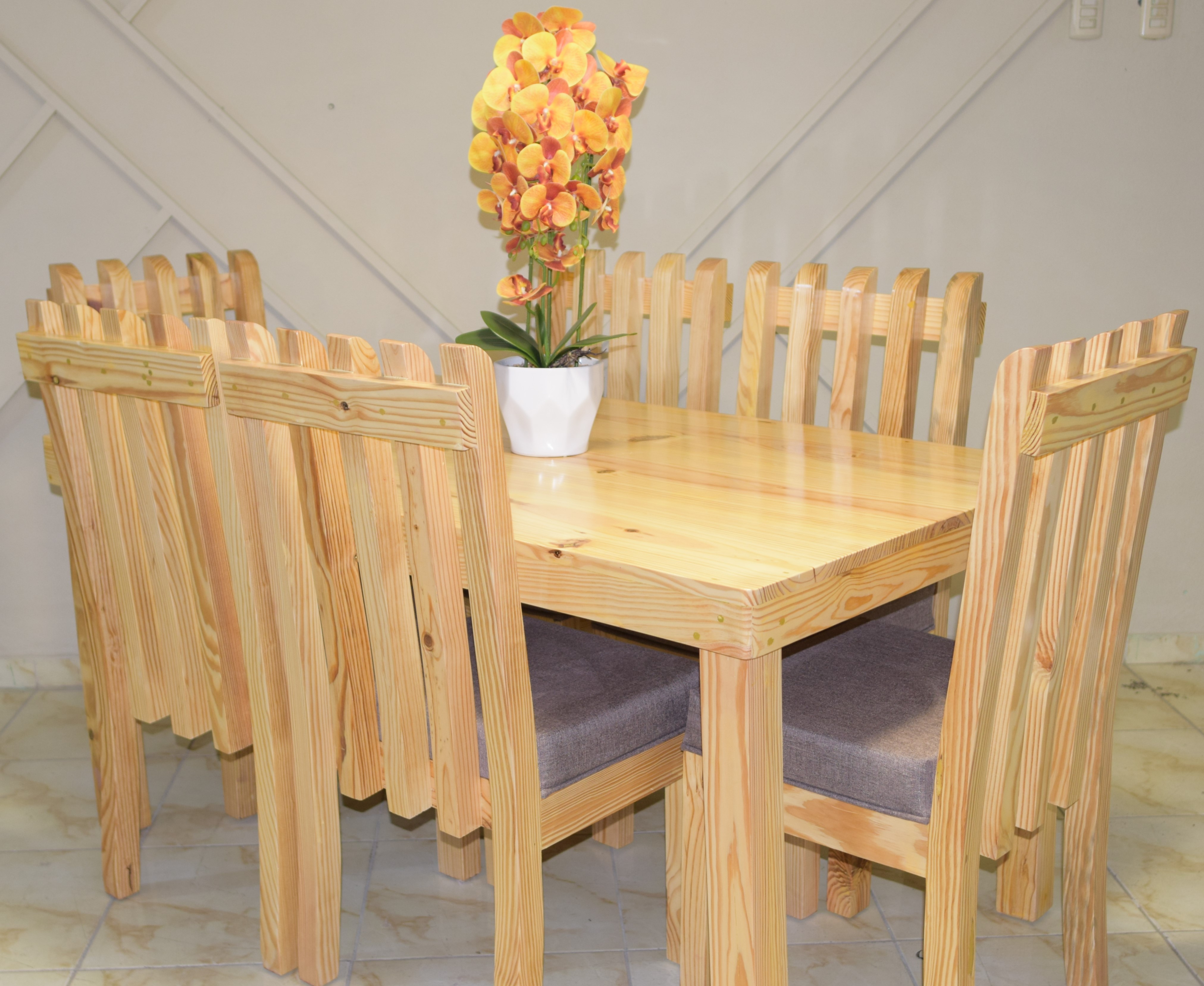 JGO. COMEDOR 4 SILLA PALITO PINO
